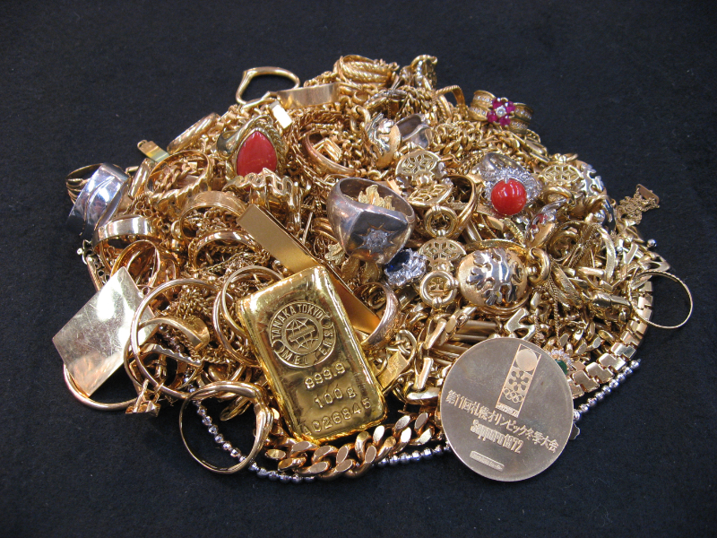 使わなくなったアクセサリーで、金かプラチナか何かわからないものでもまとめてお持ちください。